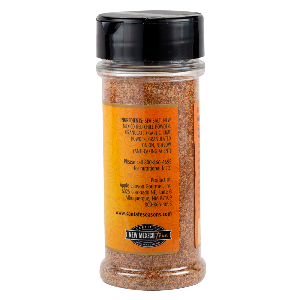 This bold combination of lime, New Mexico red chile, salt, garlic and onion will spice up a Bloody Mary, scrambled eggs or French Fries. It is tasty on popcorn or corn on the cob, rice, noodles, veggies, or use as a marinade for beef, seafood, or poultry.