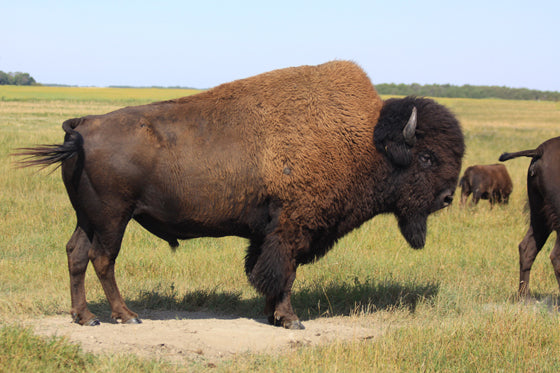 Hay dos subespecies de bisonte estrechamente relacionadas: el bisonte de bosque y el bisonte de llanura. Las diferencias físicas y genéticas distinguen a las dos subespecies. El bisonte de bosque es el mamífero terrestre nativo vivo más grande de América del Norte. Generalmente es más grande que el bisonte de las llanuras y el peso promedio de los machos maduros es de aproximadamente 2000 libras. La joroba es mucho más pronunciada y el punto más alto de la joroba está delante de las patas delanteras. El bisonte de las llanuras es algo más pequeño y un toro pesa alrededor de 1500 libras. La joroba es más redondeada y el punto más alto se sitúa más sobre las patas delanteras. Por favor vea las fotos.